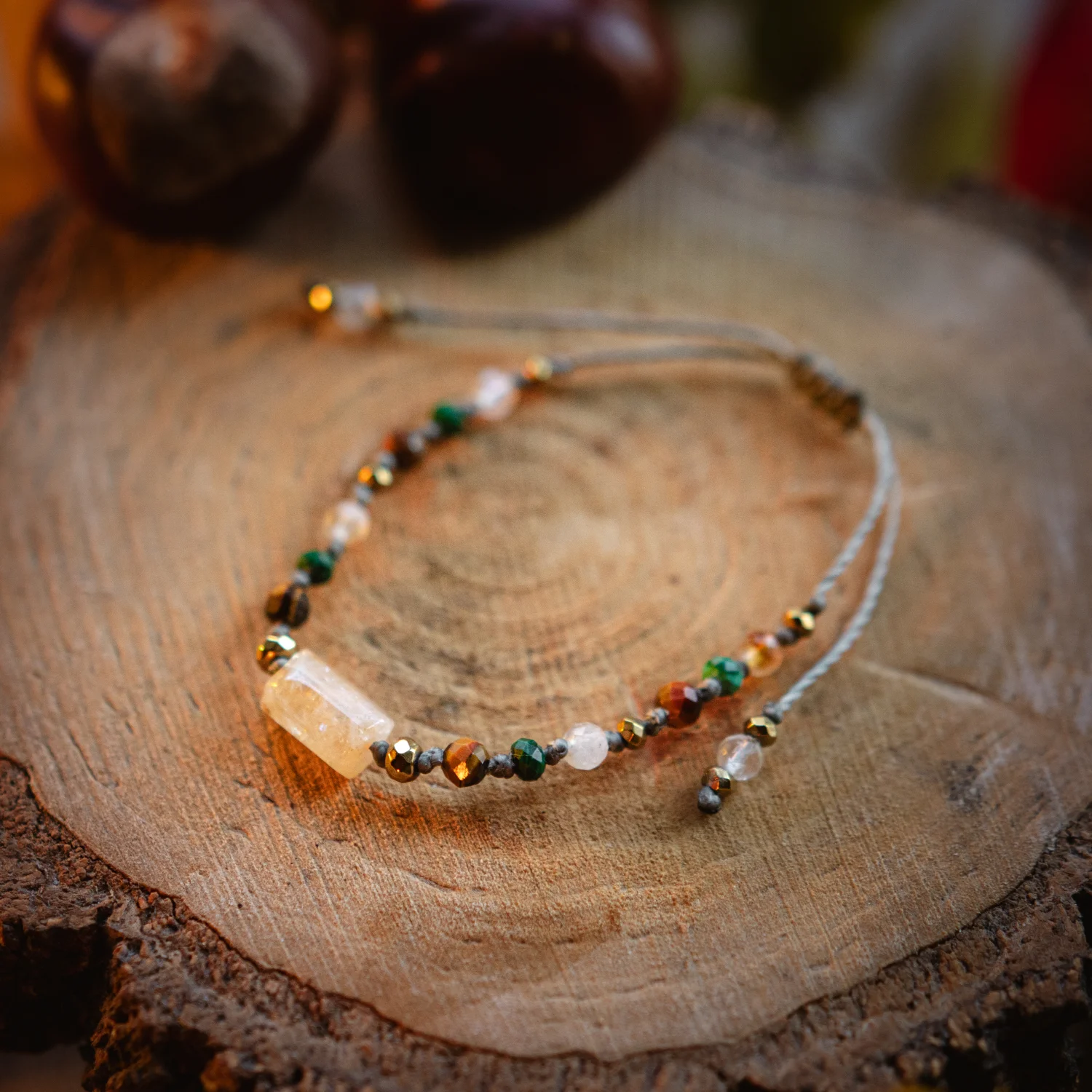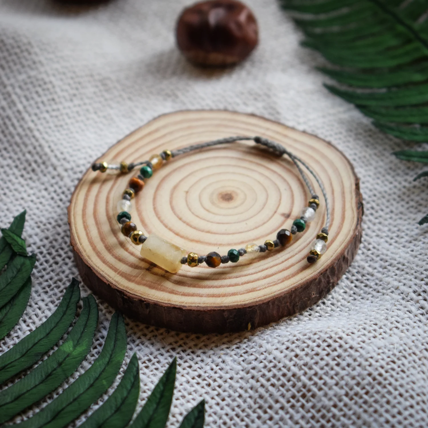 - kamienie naturalne: cytryn, tygrysie oko, malachit, hematyt