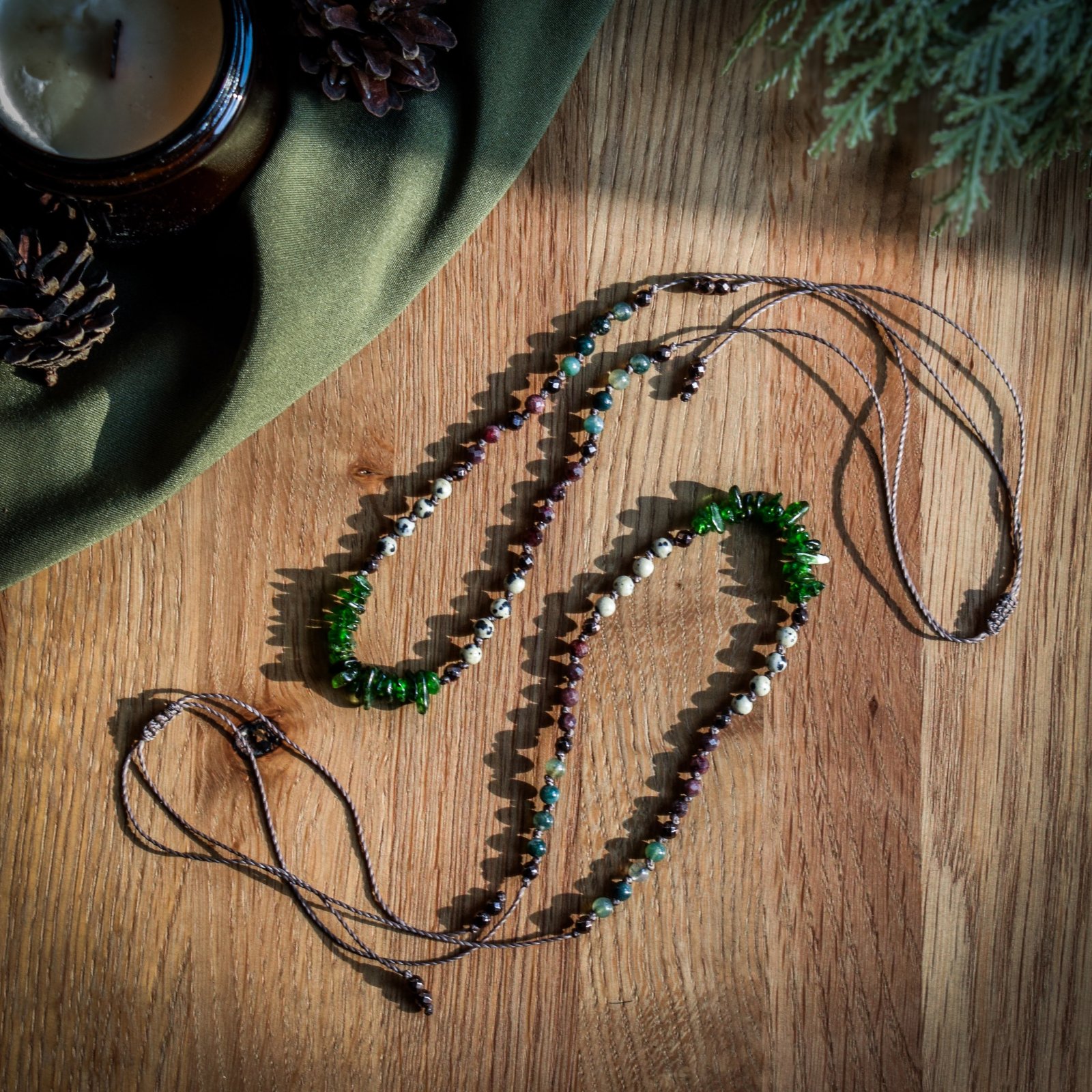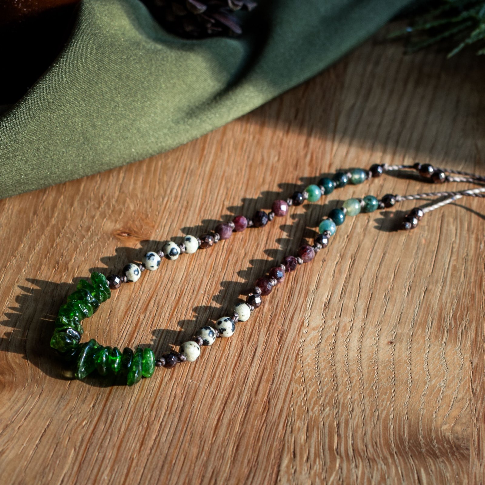 • kamienie naturalne: diopsyd, granat, jaspis dalmatyński, agat mszysty, hematyt.